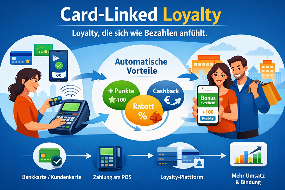 Card-linked loyalty connects payment cards, bank cards or digital wallets directly to rewards programmes – no apps, no stamps, no friction.